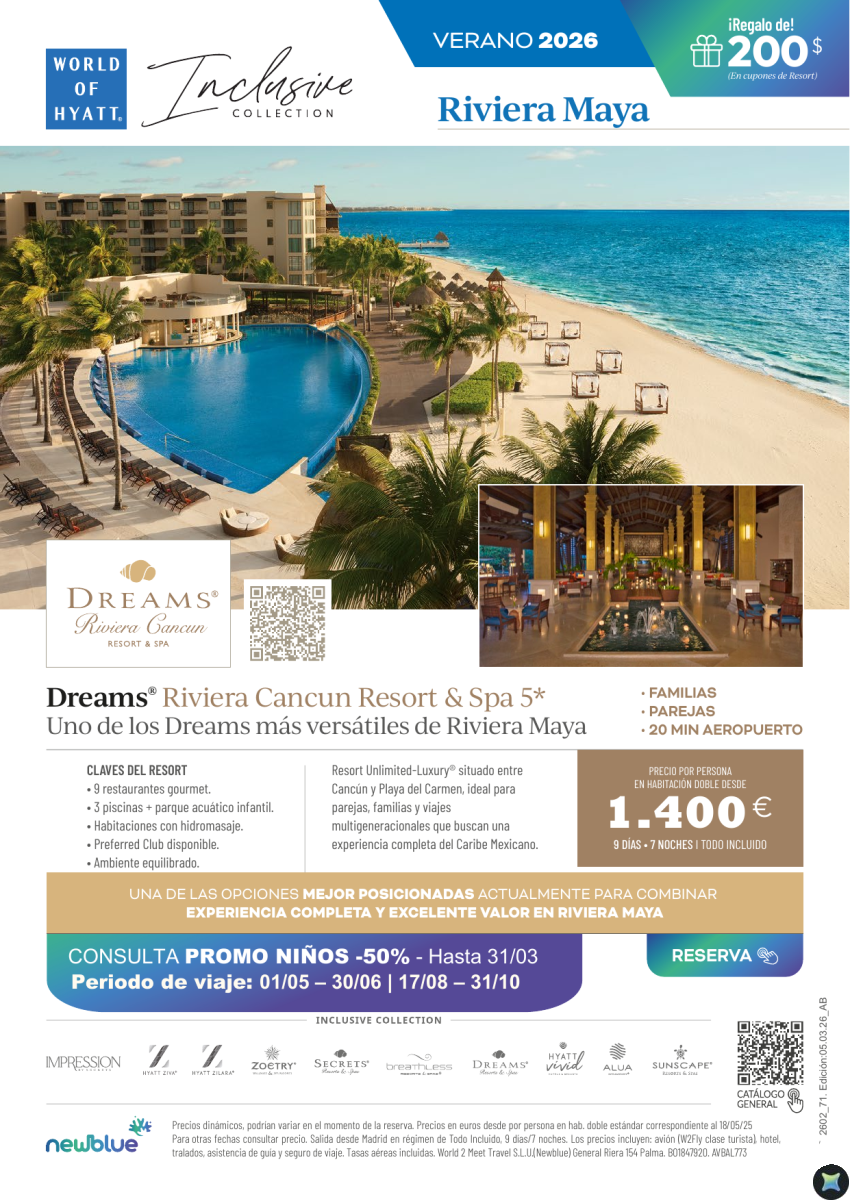 Riviera Maya: Dreams 5★ T.I desde 1.400€ | 9 días + 200$ de regalo +Promo -50% Niños